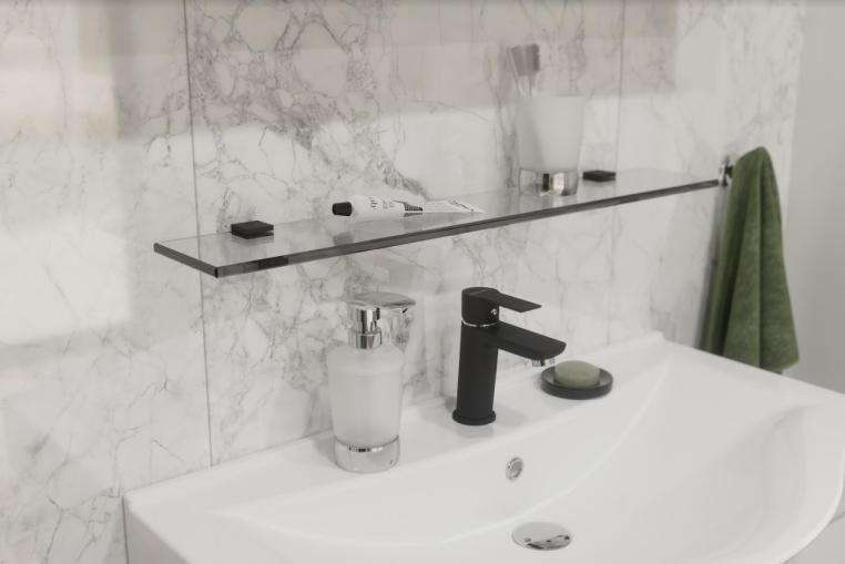 Прозрачная полка Stworki Glass Shelf 70 с черными держателями отлично впишется в современные интерьеры. Изюминка модели – выбеленное закаленное стекло CrystalVision. Помимо стойкости к высоким нагрузкам и влажности воздуха, оно подкупает идеальной нейтральностью без зеленых и голубых оттенков. Благодаря этому стекло не искажает цвет плитки или другого отделочного материала.