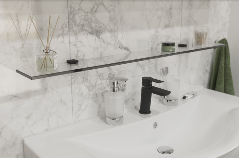 Полка Stworki Glass Shelf 90 – ключ к созданию идеального порядка в ванной комнате. Размер изделия позволяет разместить все необходимые средства гигиены и косметики. За надежную фиксацию на стене отвечают латунные держатели с комплектом крепежа. Особое внимание стоит уделить материалу полки – выбеленному стеклу CrystalVision. Благодаря продуманной очистке сырья от примесей железа полотно получается максимально прозрачным, а кромка не имеет неприглядного зеленого оттенка.