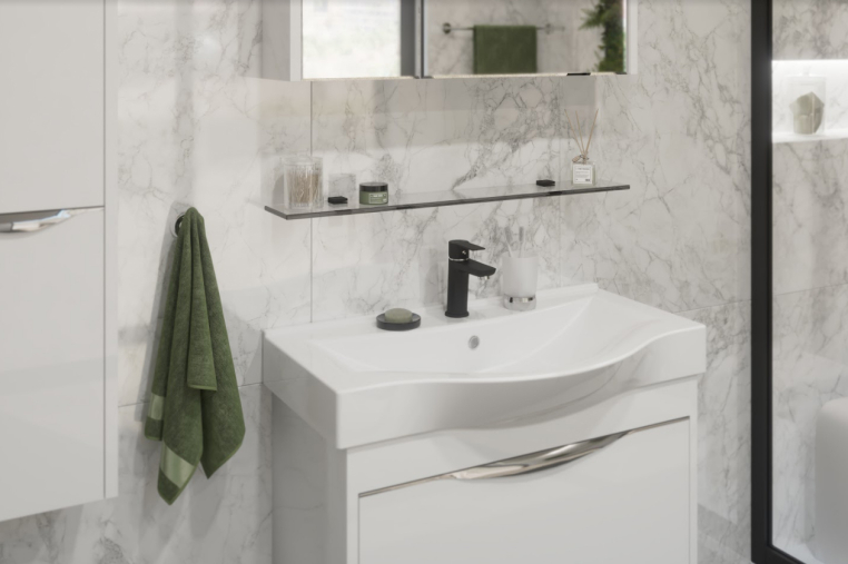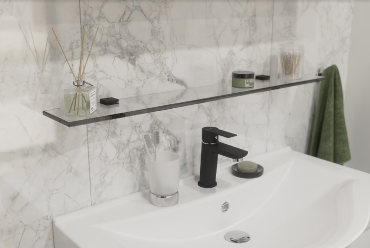 Для эффектного оснащения ванной комнаты подойдет полка Stworki Glass Shelf 80. Ее особенность – в использовании специального выбеленного стекла CrystalVision. Технология очистки от примесей железа позволяет получить максимальную прозрачность полотна без зеленоватой или голубой кромки. Стильный контраст создает черная фурнитура, выполненная из долговечной латуни.