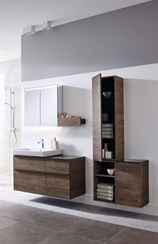 Шкаф Geberit Smyle Square 500.357.JR.1 выполнен в современном стиле и отлично дополнит интерьер любой ванной комнаты. Модель оснащена 2 выдвижными ящиками с самовытягивающимся механизмом. Благодаря подвесной конструкции модель не занимает много места, что позволяет экономить пространство в небольшой ванной комнате, а также облегчает уборку. Корпус и фасад изделия выполнены из влагостойкого трехслойного ДСП, покрытие корпуса и фасада - меламиновая структура дерева.