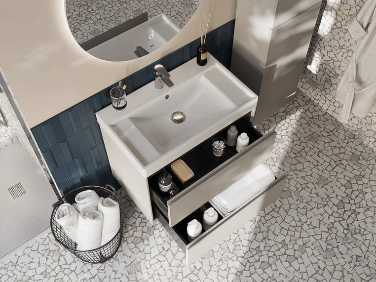 Тумба под раковину Roca Ona 80 представляет собой стильное и функциональное решение для вашей ванной комнаты. Она изготовлена из качественных материалов и имеет подвесную конструкцию, что облегчает процесс уборки и обеспечивает доступ к пространству под тумбой.