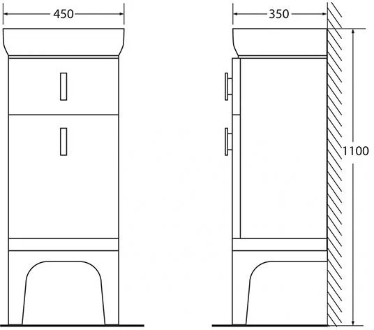Шкаф напольный BelBagno Prado 45 см PRADO-1100-AC-PC-BL - система хранения: один выдвижной ящик и одна распашная дверь.