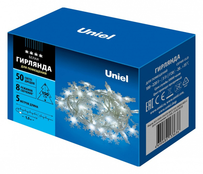 Гирлянда Супернить Uniel ULD-S0500 ULD-S0500-050/DTA WHITE IP20 SNOWFLAKES-2
