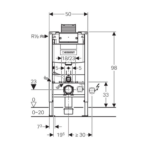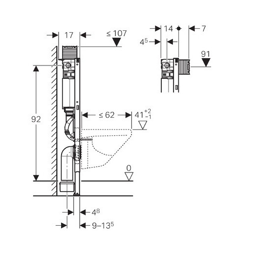 Система инсталляции с бачком Geberit Omega 111.030.00.1 предназначена для монтажа подвесных унитазов с вылетом до 62 см. Модель представляет собой настенную опорную раму с бачком и регулируемыми по высоте ножками. Инсталляция подходит для гипсокартонных стен, для встраивания в пристенки по высоте рамы, для встраивания в перегородку системы Geberit Duofix по высоте рамы. Защитная крышка окна технического обслуживания, с возможностью укорачивания, защищает от влаги и грязи. Монтаж и сервисное обслуживание смывного бачка скрытого монтажа не требуют использования инструментов. Рама выполнена из стали с антикоррозиийным порошковым напылением.