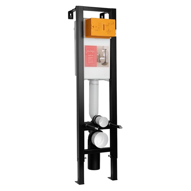 Толщина бачка 18.7 см, прочный полипропилен с защитным чехлом от конденсата, регулировка фановой трубы по глубине.