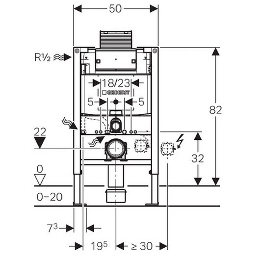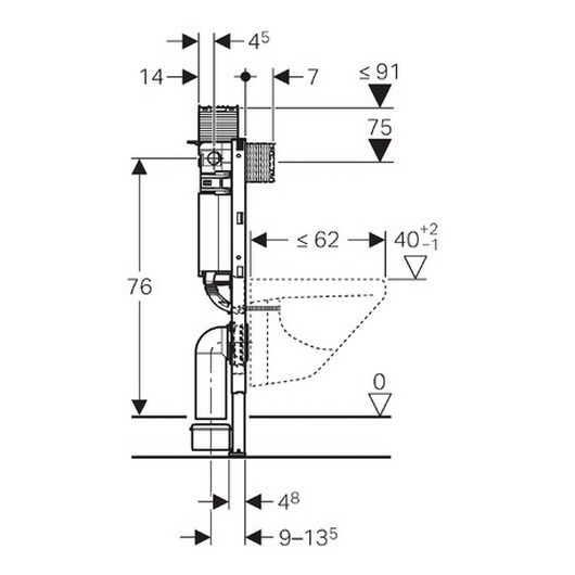 Система инсталляции с бачком Geberit Omega 111.003.00.1 предназначена для монтажа подвесных унитазов с вылетом до 62 см. Модель представляет собой настенную опорную раму с бачком и регулируемыми по высоте ножками. Инсталляция подходит для гипсокартонных стен, для встраивания в пристенки по высоте рамы, для встраивания в перегородку системы Geberit Duofix по высоте рамы. Защитная крышка окна технического обслуживания, с возможностью укорачивания, защищает от влаги и грязи. Монтаж и сервисное обслуживание смывного бачка скрытого монтажа не требуют использования инструментов. Рама выполнена из стали с антикоррозиийным порошковым напылением.