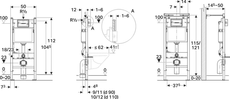 Geberit Duofix монтажный комплект Платтенбау для подвесного унитаза, Н112, клавиши Delta, цвет хром глянцевый, 12 cм (UP 100).