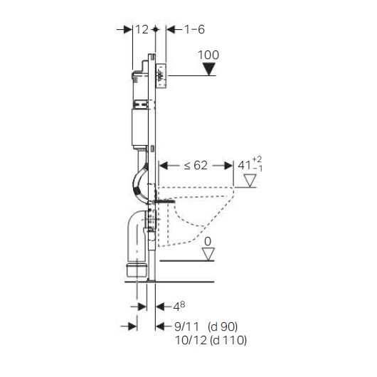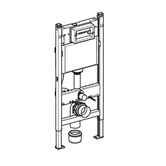 Система инсталляции с бачком Geberit Delta 111.153.00.1 предназначена для монтажа подвесных унитазов с вылетом до 62 см. Модель представляет собой настенную опорную раму с бачком и регулируемыми по высоте ножками. Инсталляция подходит для гипсокартонных стен, для встраивания в пристенки по высоте рамы или по высоте помещения, для встраивания в фальшстены по высоте помещения, для одинарного, двойного смыва или смыва смыв-стоп. Рама подготовлена для крепления крепежных скоб для установки нестандартного санфаянса. Рама выполнена из стали с антикоррозиийным порошковым напылением.