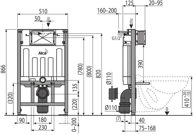Система инсталляции для унитаза AlcaPlast Sadromodul AM101/850