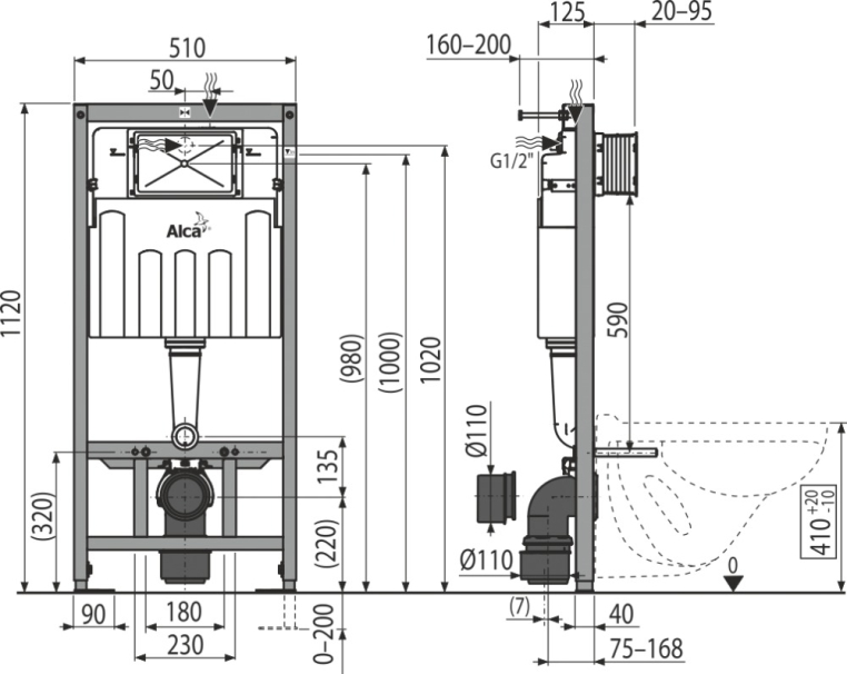 Инсталляция для унитаза AlcaPlast AM101/1120 для сухой установки