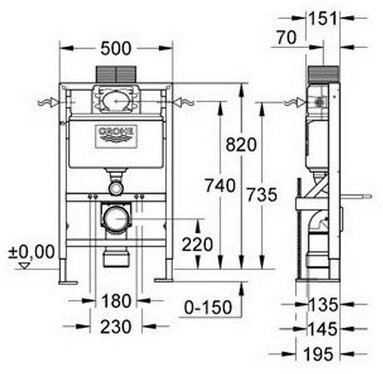 Инсталляция для унитаза Grohe Rapid SL 38587000 из линейки немецкой сантехники Rapid SL подходит в том случае, если места под скрытые устройства не так много. Вот почему у этой модели скромные габариты: высота 82 сантиметра, глубина 19 и ширина 50. Но в то же время бачок на 9 литров и самонесущая рама из стали придают Grohe Rapid SL 38587000 основательности. Инсталляция уже подготовлена для монтажа и облицовки, вместе с ней в комплекте поставляется крепеж, а также необходимые технические узлы, включая пневматический клапан с поддержкой трех режимов работы и гарнитуры для впуска и смыва. Изделие защищено от конденсата, что придает ему износоустойчивость. А комбинировать эту модель можно с подвесными унитазами европейского производства.