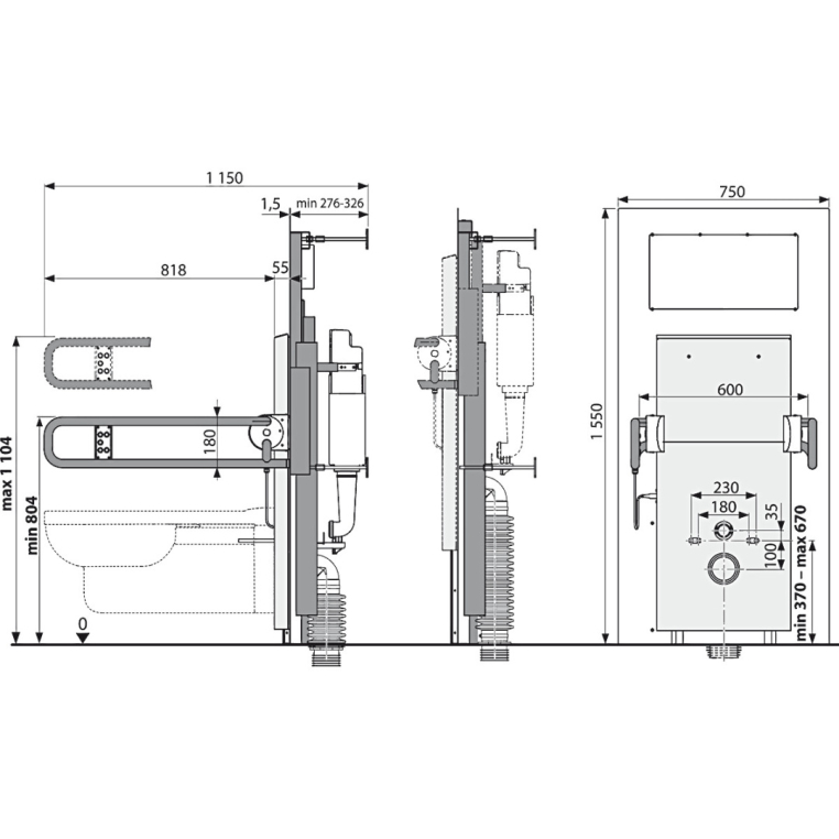 Инсталляция для унитаза AlcaPlast Sadromodul AM101/1500L для людей с ограниченными возможностями