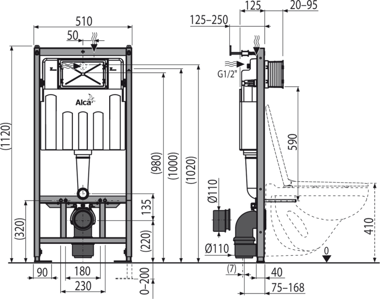 Скрытая система инсталляции для сухой установки AlcaPlast Sadromodul AM101/1120-001 для гипсокартона