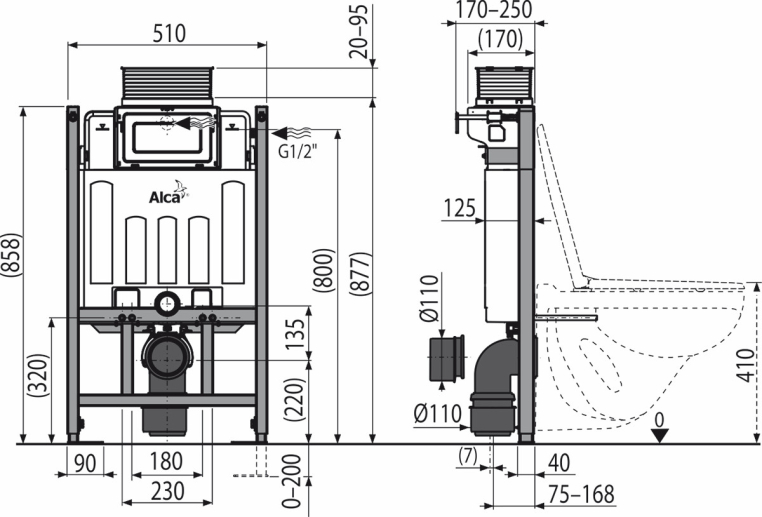 Инсталляция для унитаза AlcaPlast Sadromodul AM118/850 для сухой установки