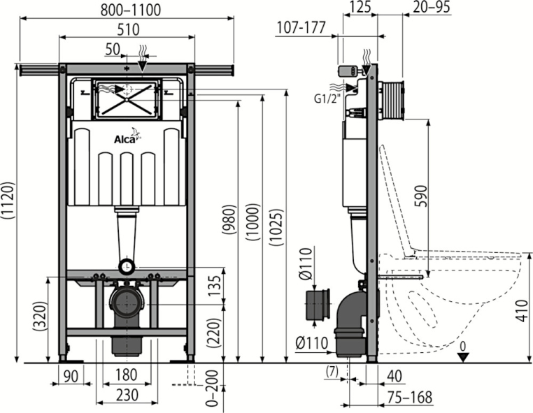 Скрытая система инсталляции для сухой установки AlcaPlast Jadromodul AM102/1120
