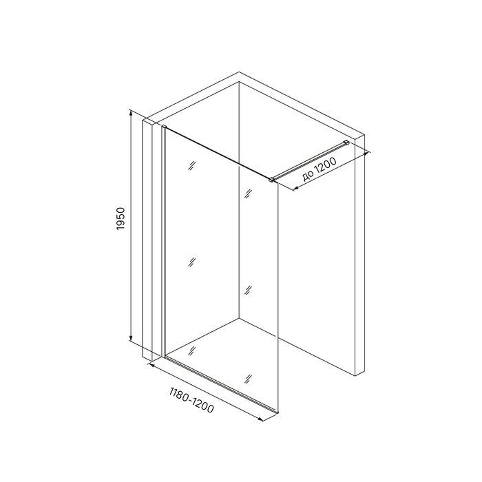 - Перегородка Slide SLI8CS2i23 имеет регулируемый размер 1180-1200х1950 мм, позволяющий сгладить неровность стен до 20 мм.
