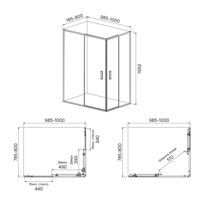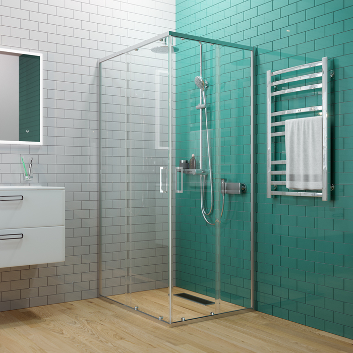 Душевое ограждение для ванной комнаты Zodiac прямоугольной формы с регулируемым размером 985-1000х785-800х1950 мм, что позволяет сгладить неровности стен до 15 мм. Ограждение имеет универсальную ориентацию.