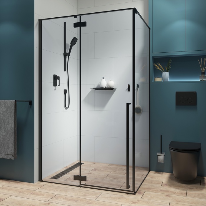 Душевое ограждение для ванной комнаты Slide стильного черного цвета – изящное решение для оформления ниши под душевую зону для тех, кто выбирает функциональный минимализм и чистые формы. Ограждение имеет удобный регулируемый размер 880-900х1100-1200х1950 мм, позволяющий сгладить неровность стен до 20 мм. Эргономичное решение для компактных пространств — установка двери возможна как с правой, так и с левой стороны.