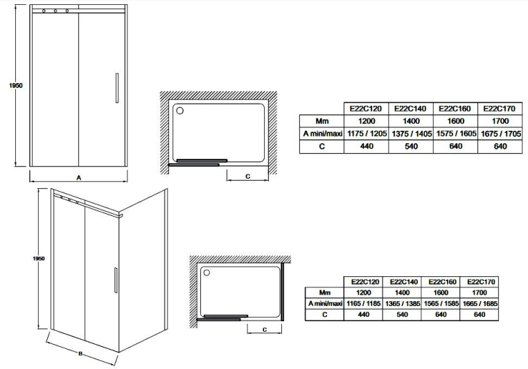 Раздвижная дверь без порожка (для легкого доступа), правая, для установки в нишу или с неподвижной душевой стенкой