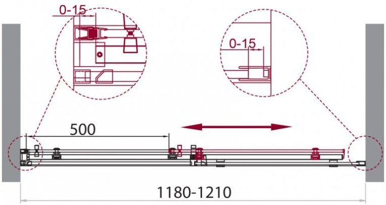 Душевая дверь в нишу Возможная установка: на поддон, на пол Ориентация: универсальная Материал полотна двери: закаленное стекло Несущий профиль из нержавеющей стали Регулировка ширины: предусмотрена за счет боковых профилей Крепления полотна двери: двойные подшипниковые ролики Ресурс эксплуатации: 15 лет Гарантия: 3 года с даты продажи, за исключением резинотехнических изделий