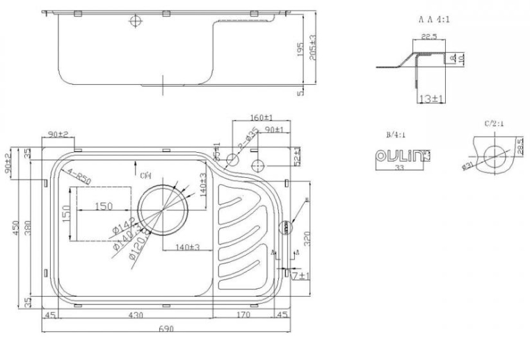 Мойки OULIN® производятся из нержавеющей стали премиум-качества марки AISI 304.