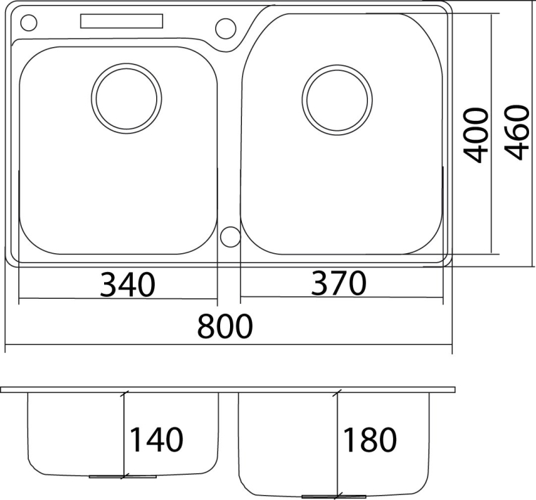 • Глубина чаш: 180мм и 140мм;