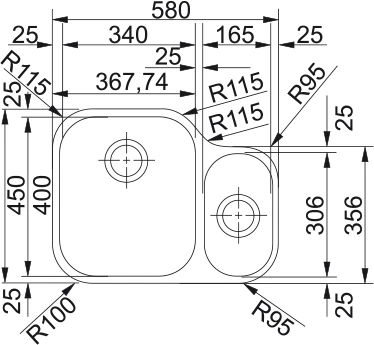 • Чаша 2: ширина: 306.5 mm