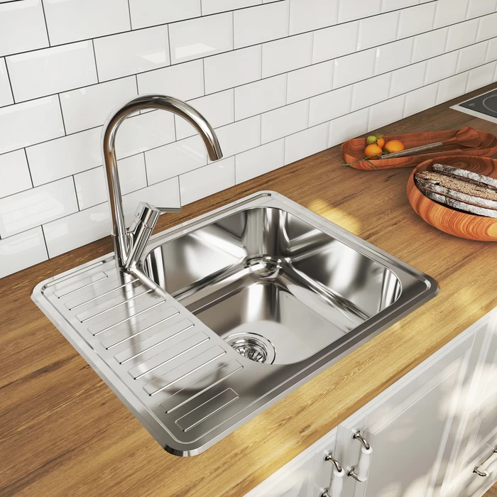 Комплектация: уплотнительная прокладка, крепления ; Размер мойки: 585х485 мм; Сталь: нержавеющая, 0,8 мм; Ширина шкафа: от 45 см; Глубина чаши: 180 мм