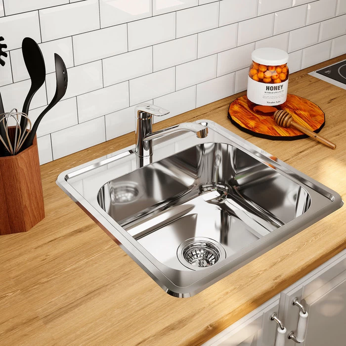 Комплектация: уплотнительная прокладка, крепления; Размер мойки: 485х485 мм; Сталь: нержавеющая, 0,8 мм; Ширина шкафа: от 45 см; Глубина чаши: 180 мм