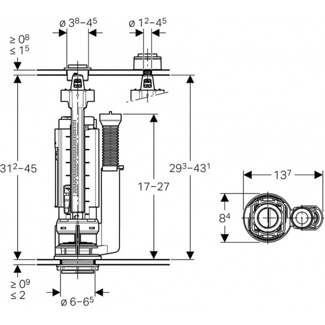 Запасной сливной клапан двойного смыва Geberit Typ290 282.303.21.2
