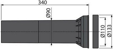 Патрубок сливной для подключения подвесного унитаза к стокам, полипропилен, Ø90 мм, с прокладками