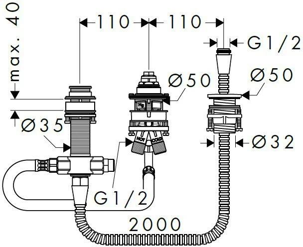 Скрытая часть смесителя Hansgrohe на 3 отверстия на край ванны 13439180