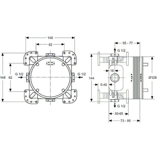 Комплект для монтажа Ideal Standard EASY-BOX A1000NU предназначен для установки с однорукоятковыми или термостатическими функциональными комплектами.