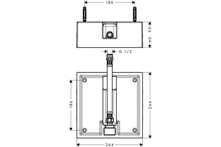 Скрытая часть верхнего душа 260х260мм, 1/2".