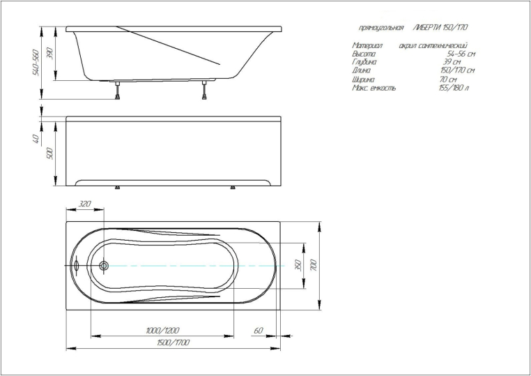 Фронтальный экран Aquatek Лугано/Либерти Lifestyle 170 EKR-F0000087
