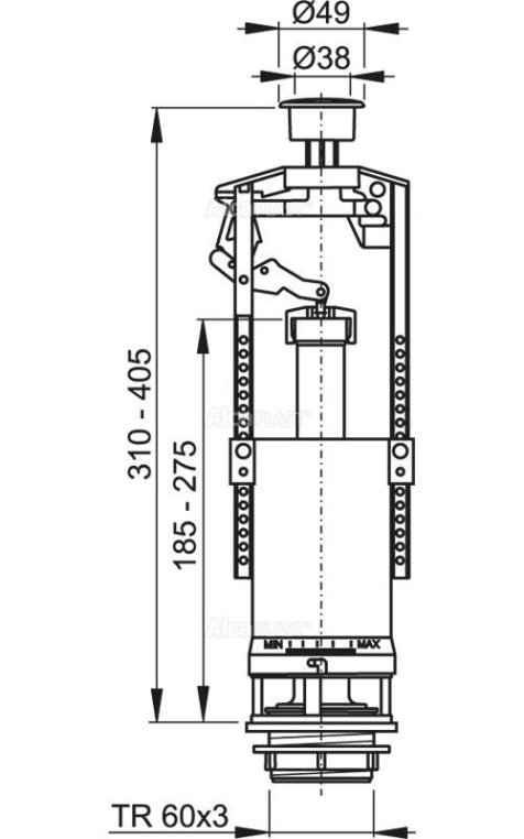 Конструкция позволяет регулировать высоту механизма в зависимости от высоты бачка