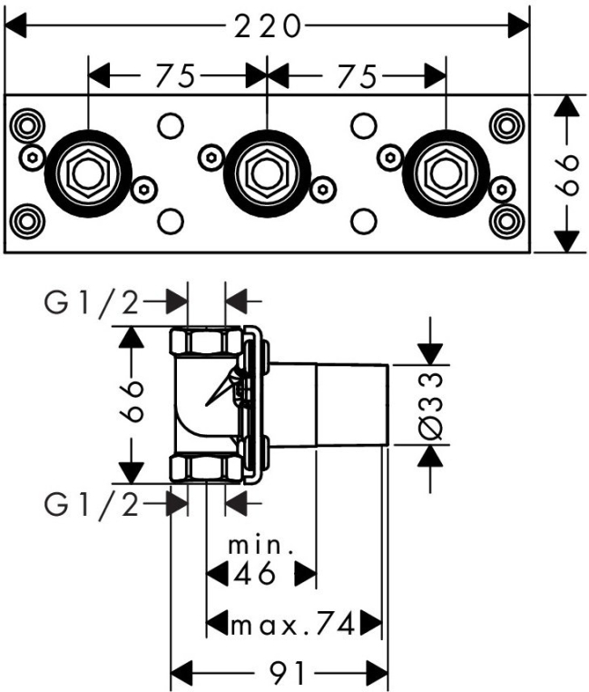 Скрытая часть термостата Hansgrohe ShowerTablet 600 13129180 для 2 потребителей