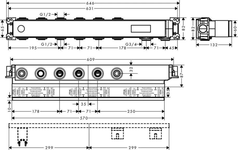 Скрытая часть термостатического смесителя для душа Hansgrohe RainSelect 15312180 с 4 кнопками