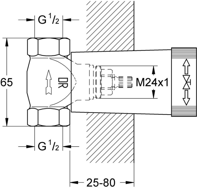 Встраиваемая часть вентиля Grohe, резьба 1/2" 29811000 латунь