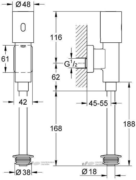 Смывное устройство для писсуара Grohe Tectron Rondo 37421000