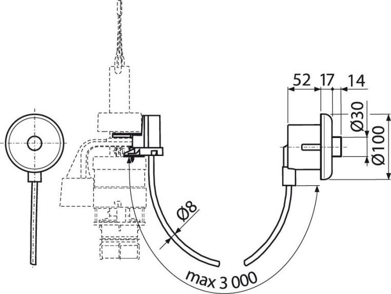 Шланг длиной 3 м для подключения кнопки к выпускному механизму