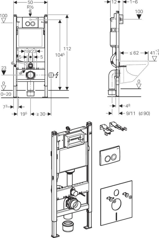 458.121.21.1 Монтажный комплект Geberit Duofix для подвесного унитаза
