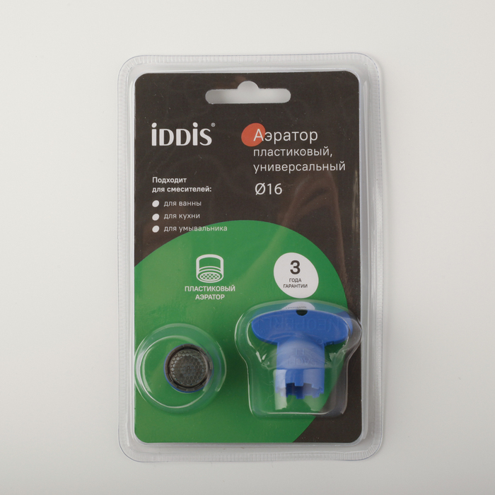 Встраиваемый аэратор IDDIS® представляет собой сетчатую насадку на смеситель, предназначенную для насыщения воды кислородом без заметного снижения напора струи. Рисунок нижней сетки типа «соты» обеспечивает высокую шумоизоляцию и лучшее распределение потока, не позволяя брызгам воды заливать пространство вокруг. Аэратор IDDIS® дает возможность улучшить качество воды за счет фильтрации крупных нежелательных частиц и примесей, сделать ее менее хлорированной. Модель подходит для комплектации смесителей IDDIS® с внутренней резьбой крана диаметром 16 мм. Изделие устанавливается непосредственно в корпус смесителя без дополнительных монтажных гаек, что обеспечивает красивый и минималистичный внешний вид смесителя.
