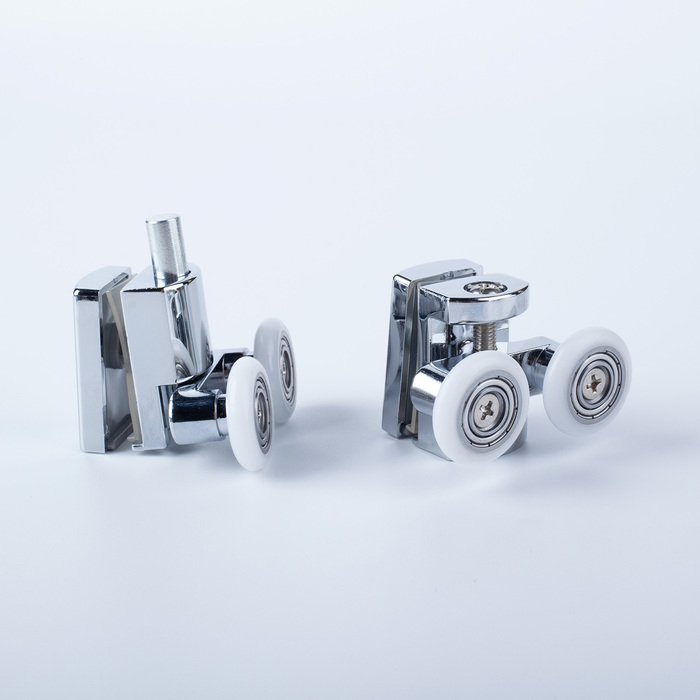 Комплект роликов для раздвижных дверей душевой кабины или ограждения. Подходят для стекол толщиной 7-8 мм. Комплект из 4 штук (2 верхних и 2 нижних ролика).