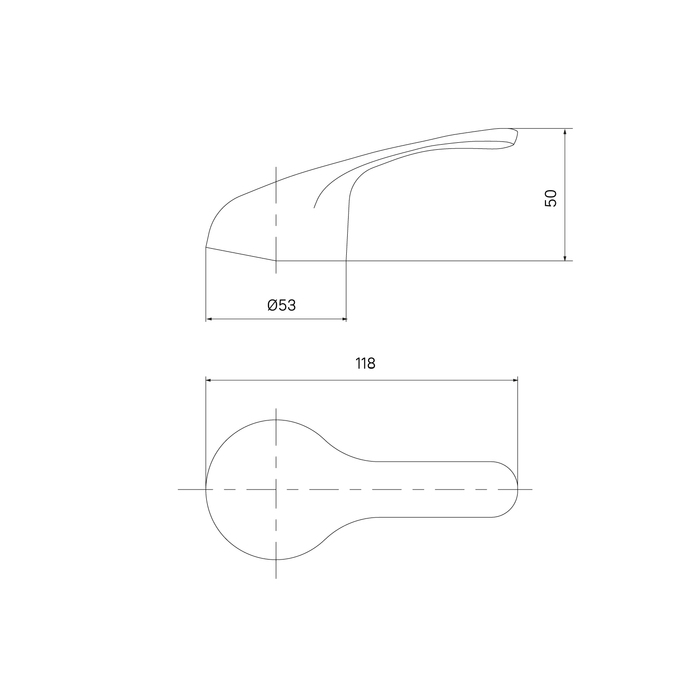 Универсальная сменная ручка для смесителя классической вытянутой формы. Подходит для картриджа диаметром 35 мм.