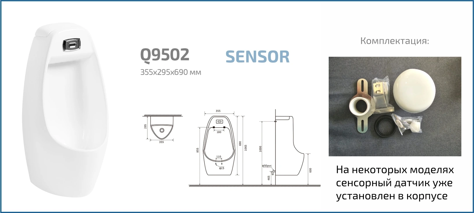 Ссылка на СЕРТИФИКАТ СООТВЕТСТВИЯ на электрику (https://gid.com.ru/thumb/2/E0XPe2hetiGZjo-wcUssZw/r/d/dobrovolnyj_sertifikat.jpg) — Ссылка на инструкции и схемы (https://cloud.mail.ru/public/yCbs/g2DN4hEGq) — Publico — коллекция писсуаров, выполненная в строгом и лаконичном дизайне. Испанское качество и европейские стандарты соответствуют самым высоким требованиям эксплуатации. Подвесной сенсорный писсуар GiD Q9502 изготовлен из высококачественной керамики с белоснежным глянцевым покрытием, что придает ему современный и элегантный вид. Благодаря бесконтактному управлению устройство обеспечивает гигиеничность и удобство использования, автоматически активируя смыв при обнаружении пользователя. Скрытый подвод воды и настенный монтаж позволяют экономить пространство и облегчают уборку, делая эту модель идеальной для современных ванных комнат и общественных туалетов.