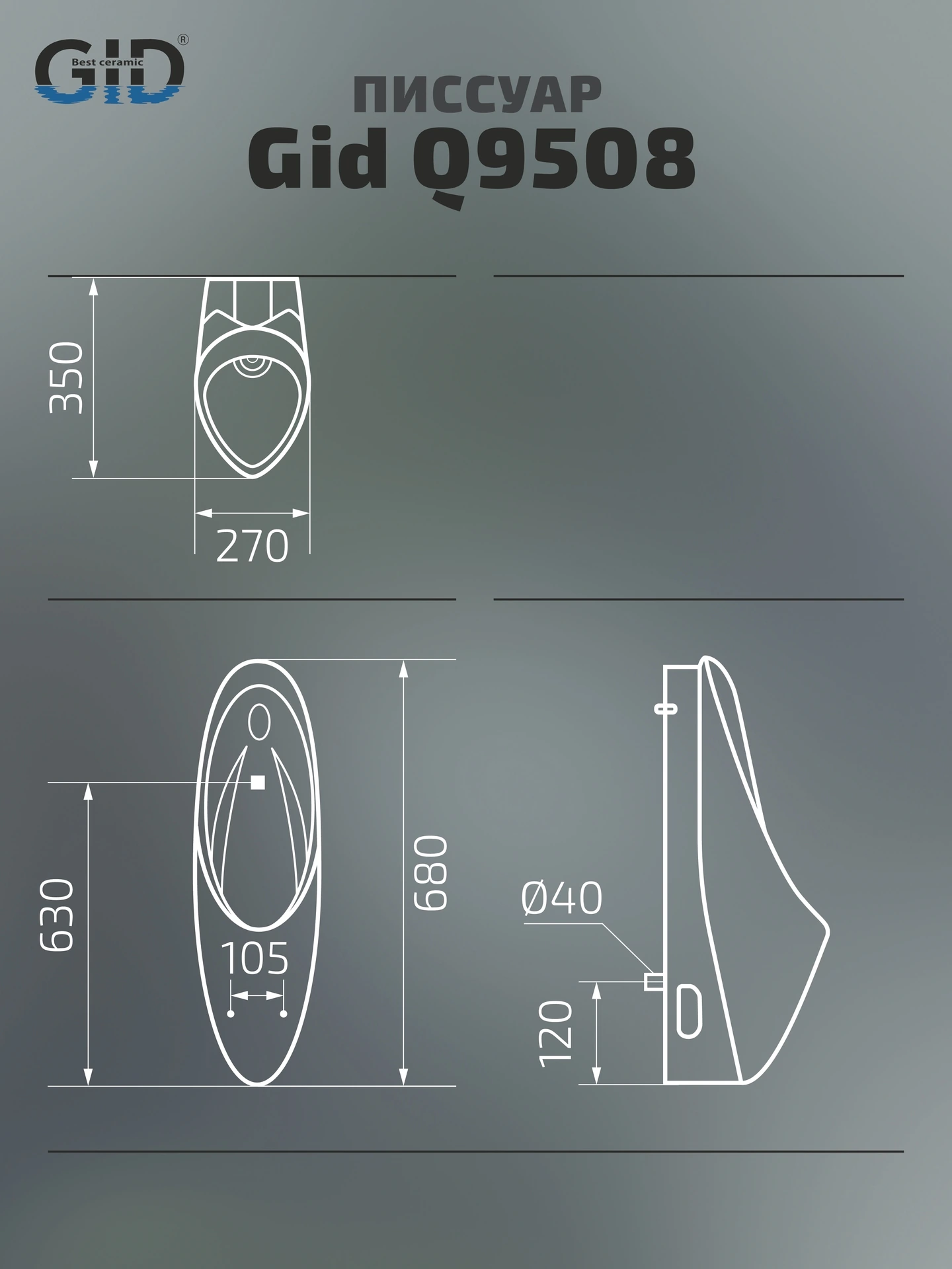 Ссылка на СЕРТИФИКАТ СООТВЕТСТВИЯ на электрику (https://gid.com.ru/thumb/2/E0XPe2hetiGZjo-wcUssZw/r/d/dobrovolnyj_sertifikat.jpg) — Ссылка на инструкции и схемы (https://cloud.mail.ru/public/Vbqu/qgK9hYqnR) — Publico — коллекция писсуаров, выполненная в строгом и лаконичном дизайне. Испанское качество и европейские стандарты соответствуют самым высоким требованиям эксплуатации. Подвесной сенсорный писсуар GiD Q9508 изготовлен из высококачественной керамики с белоснежным глянцевым покрытием, что придает ему современный и элегантный вид. Благодаря бесконтактному управлению устройство обеспечивает гигиеничность и удобство использования, автоматически активируя смыв при обнаружении пользователя. Скрытый подвод воды и настенный монтаж позволяют экономить пространство и облегчают уборку, делая эту модель идеальной для современных ванных комнат и общественных туалетов.