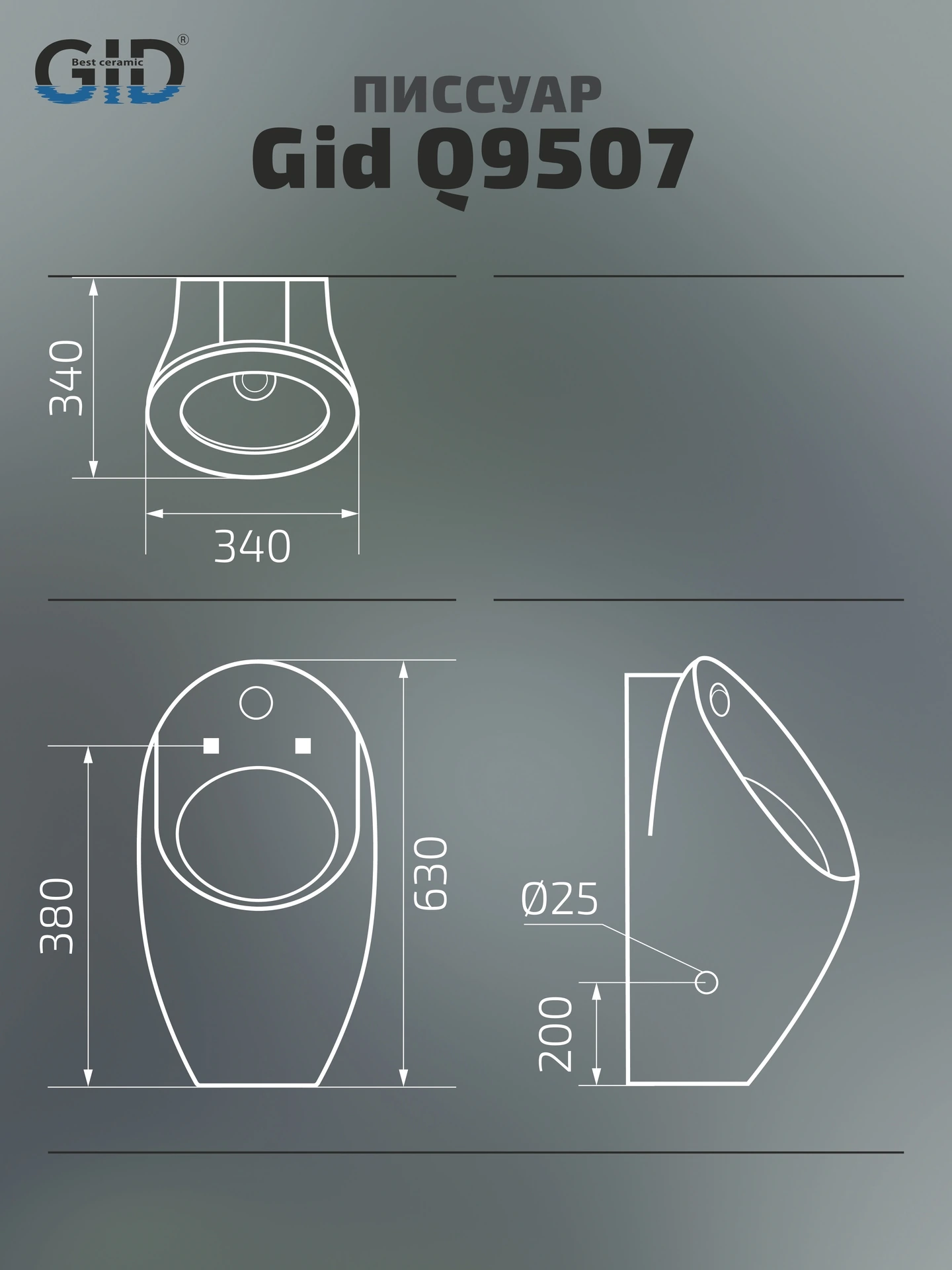 Ссылка на СЕРТИФИКАТ СООТВЕТСТВИЯ на электрику (https://gid.com.ru/thumb/2/E0XPe2hetiGZjo-wcUssZw/r/d/dobrovolnyj_sertifikat.jpg) — Ссылка на инструкции и схемы (https://cloud.mail.ru/public/U53F/vKSe6nkk5) — Publico — коллекция писсуаров, выполненная в строгом и лаконичном дизайне. Испанское качество и европейские стандарты соответствуют самым высоким требованиям эксплуатации. Подвесной сенсорный писсуар GiD Q9507 изготовлен из высококачественной керамики с белоснежным глянцевым покрытием, что придает ему современный и элегантный вид. Благодаря бесконтактному управлению устройство обеспечивает гигиеничность и удобство использования, автоматически активируя смыв при обнаружении пользователя. Скрытый подвод воды и настенный монтаж позволяют экономить пространство и облегчают уборку, делая эту модель идеальной для современных ванных комнат и общественных туалетов.