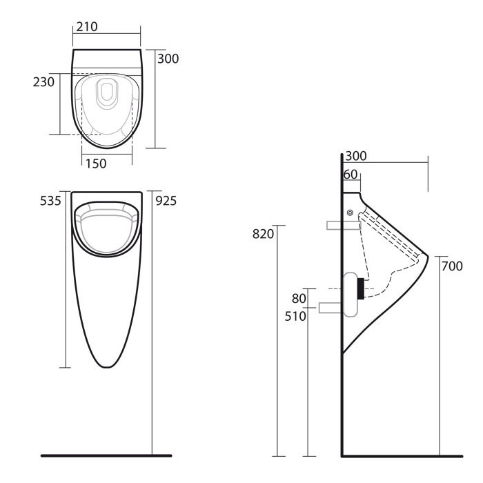 Писсуар Kerasan Aquatech в комплекте с сифоном, цвет белый 373501
