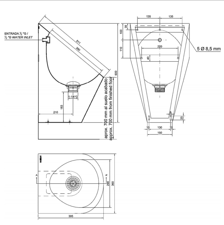 Как и вся продукция Нофер писсуар из нержавеющей стали сделан на заводе NOFER в Барселоне. При производстве антивандальной сантехники Nofer используется только качесвтенная сталь особой марки AISI 304, которая отличается предельной стойкостью к появлению коррозии и ржавчине.